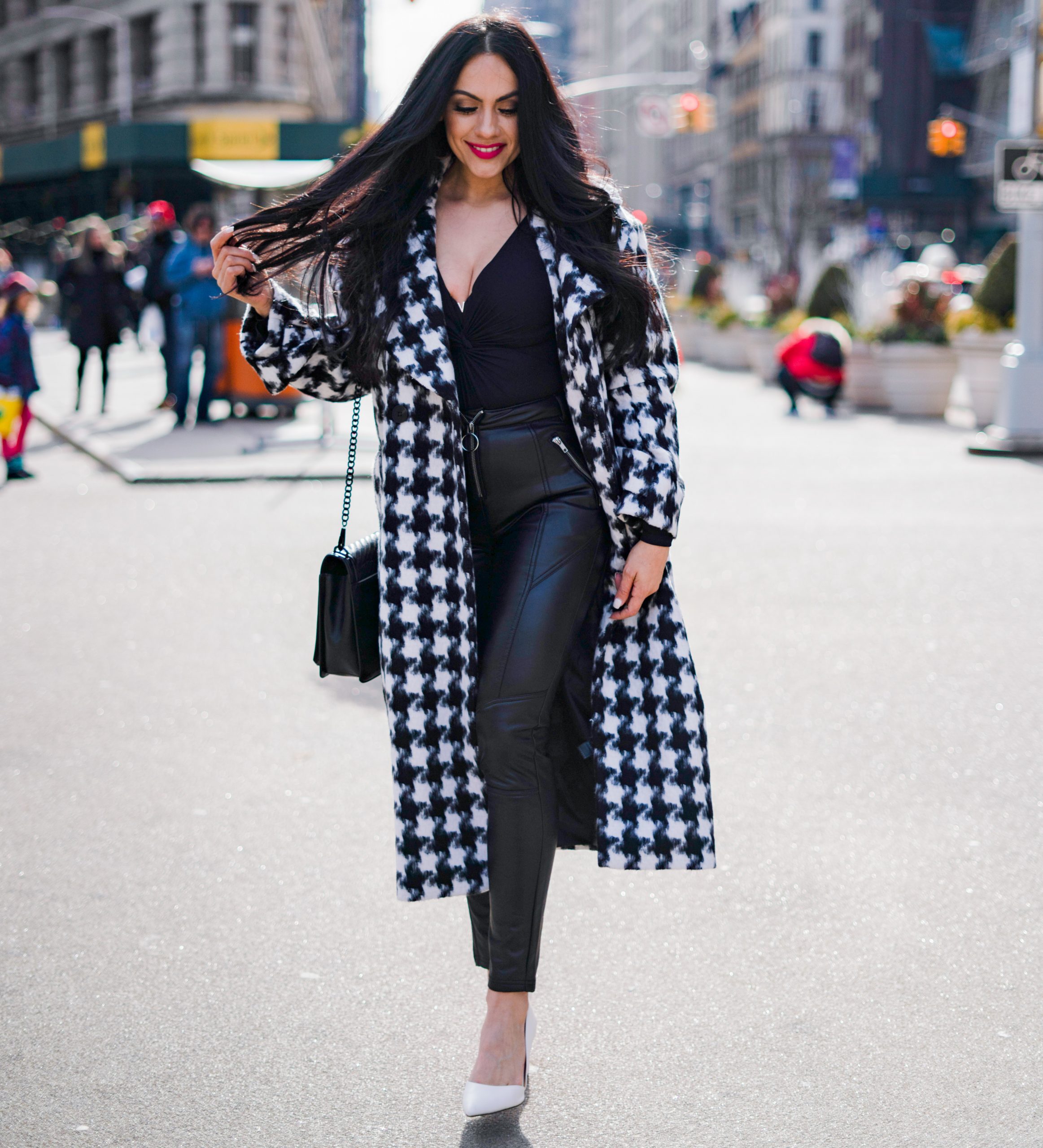 Talk about chic! This faux leather piece is quite the statement piece and a great spin on a classic trench. This can also replace the classic moto jacket for an extra sleek look. I’ve had so much fun playing with this particular trench and can’t wait to show you different ways that I love wearing it in my upcoming YouTube video.